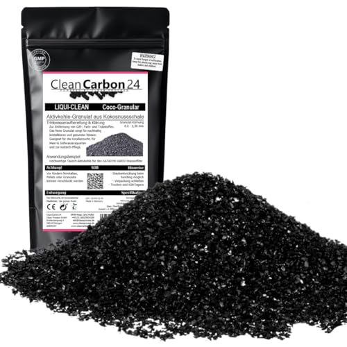 Clean Carbon 24 POWERED BY CLEAN PROCESS 1 liter aktivt kolgranulat från kokosskålar för vattenberedning (0,6-2,36 mm/8 x 30 mesh energiklass A