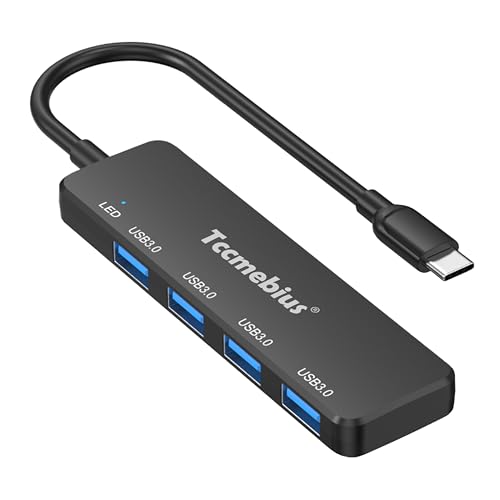 Tccmebius USB 3.0 Hubb, USB C Ultra Slim Splitter 4 Hamnar med 5Gbps Dataöverföring, Bärbar USB Förlängning för Mus Tangentbord Flashenhet Skrivare Bärbar Dator Stationär Dator Xbox PS5 (TCC-T304C)