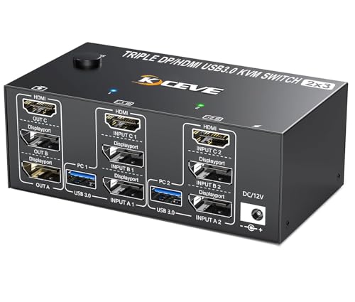 Trippelmonitorer KVM-Switch 2 Displayport HDMI, 8K@60Hz 4K@144Hz, USB 3.0 För 2 PC 3-Bildskärmar, Displayport 1.4 HDMI 2.1 För 2 PC-Delar Mus, Tangentbord Och 3