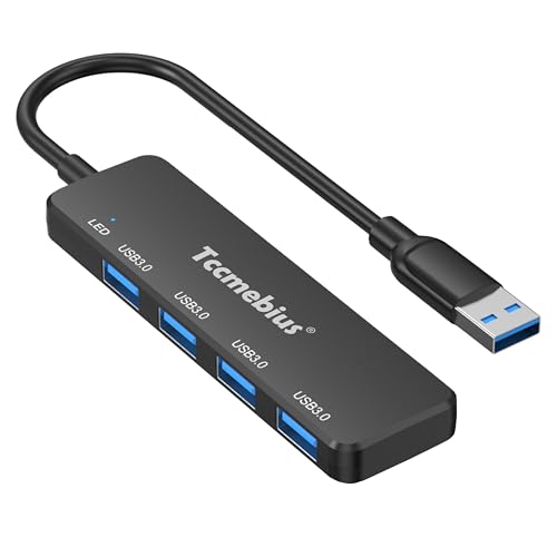 Tccmebius USB 3.0 Hubb, USB-A Ultra Slim Splitter 4 Hamnar med 5Gbps Dataöverföring, Bärbar Förlängning för Mus Tangentbord Flashenhet Skrivare Bärbar Dator Stationär Dator Xbox PS5 (TCC-T304U)