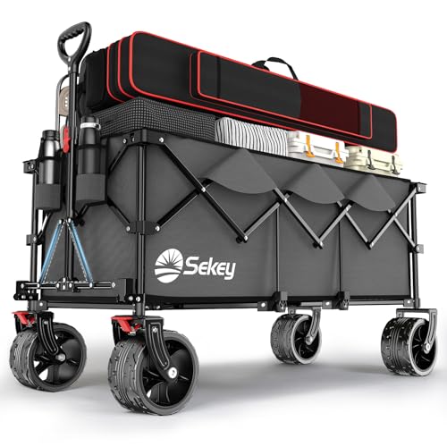 Sekey XXXL rullvagn vikbar 300 l 200 kg lastbar, vikbar rullvagn 17 x 10 cm extra breda däck alla terränger, patenterad hopfällbar från fyra riktningar, XXXL-super 4013, svart