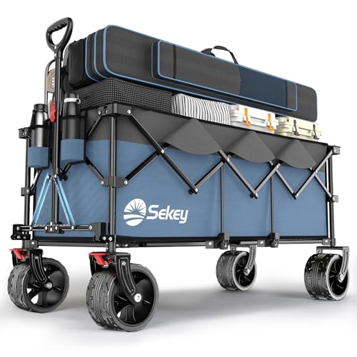 Sekey XXXL rullvagn vikbar 300 l 200 kg lastbar, vikbar rullvagn 17 x 10 cm extra breda däck alla terränger, patenterad hopfällbar från fyra riktningar, XXXL-super 4013, blå med grå