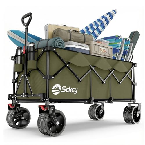 Sekey XXXL rullvagn vikbar 300 l 200 kg lastbar, vikbar rullvagn 17 x 10 cm extra breda däck alla terränger, patenterad hopfällbar från fyra riktningar, XXXL-super 4013, olivgrön