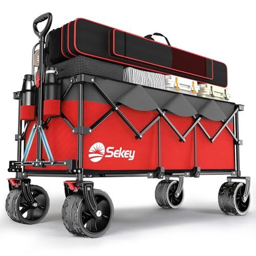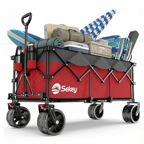 Sekey XXXL rullvagn vikbar 300 l 200 kg lastbar, vikbar rullvagn 17 x 10 cm extra breda däck alla terränger, patenterad hopfällbar från fyra riktningar, XXXL-super 4013, röd med grå