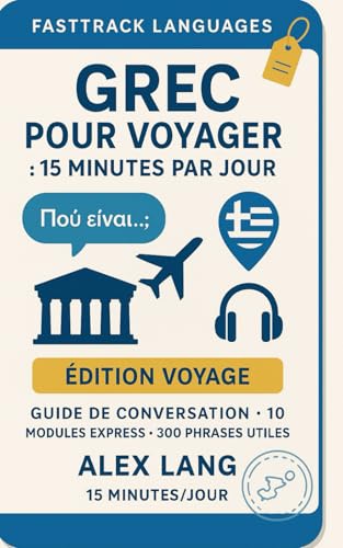 Grec pour voyager : 15 minutes par jour: Itinéraire ultra-simple (10 modules express, 300 phrases utiles) — zéro prise de tête, progrès rapides.