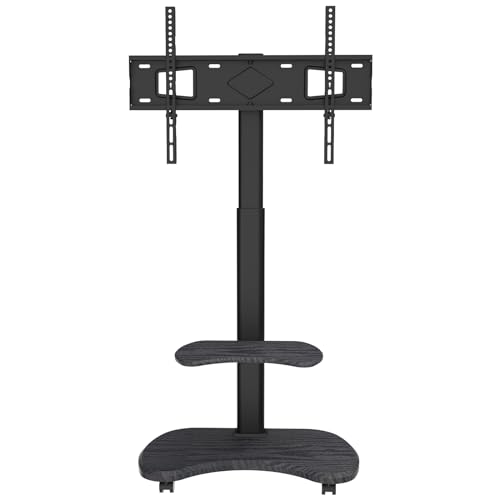 XTRARM Stellar TV-stativ rullbar med trähylla – höjdjusterbar vridbar TV-rullvagn med hjul för 32–70 tums TV upp till 45 kg – Universal TV-stativ Max VESA 600 x 400