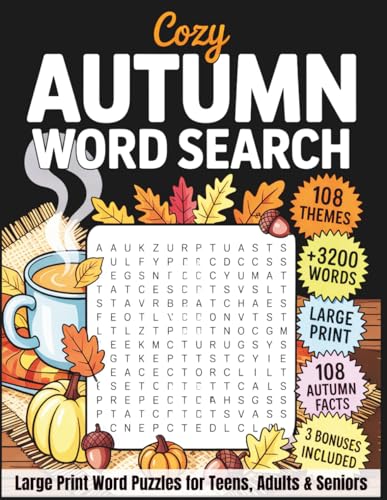 Cozy Autumn Word Search: Large Print Word Puzzles for Teens, Adults & Seniors - 108 Autumn-Themed Puzzles - 3,200 Words - 108 Fun Facts - 3 Special Bonuses