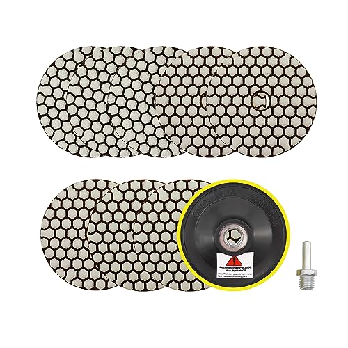 Diamant torr poleringsplatta LEKOMESH – 8 st 4 tum (#50 x 3/100 x 3/200 x 2) + M14 bakplatta + M14 rund skaftadapter, torr polerhjul set för konstgjord stenkvarts i granit marmor