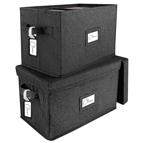 Woodoulogy Förvaringslåda i vinylskiva, set med 2 – för 7 tum/45 RPM LPs, svart fodral med lock rymmer upp till 160 album, CD-låda, spel-musikhållare, arkivmappskåp organiseringsfodral med handtag