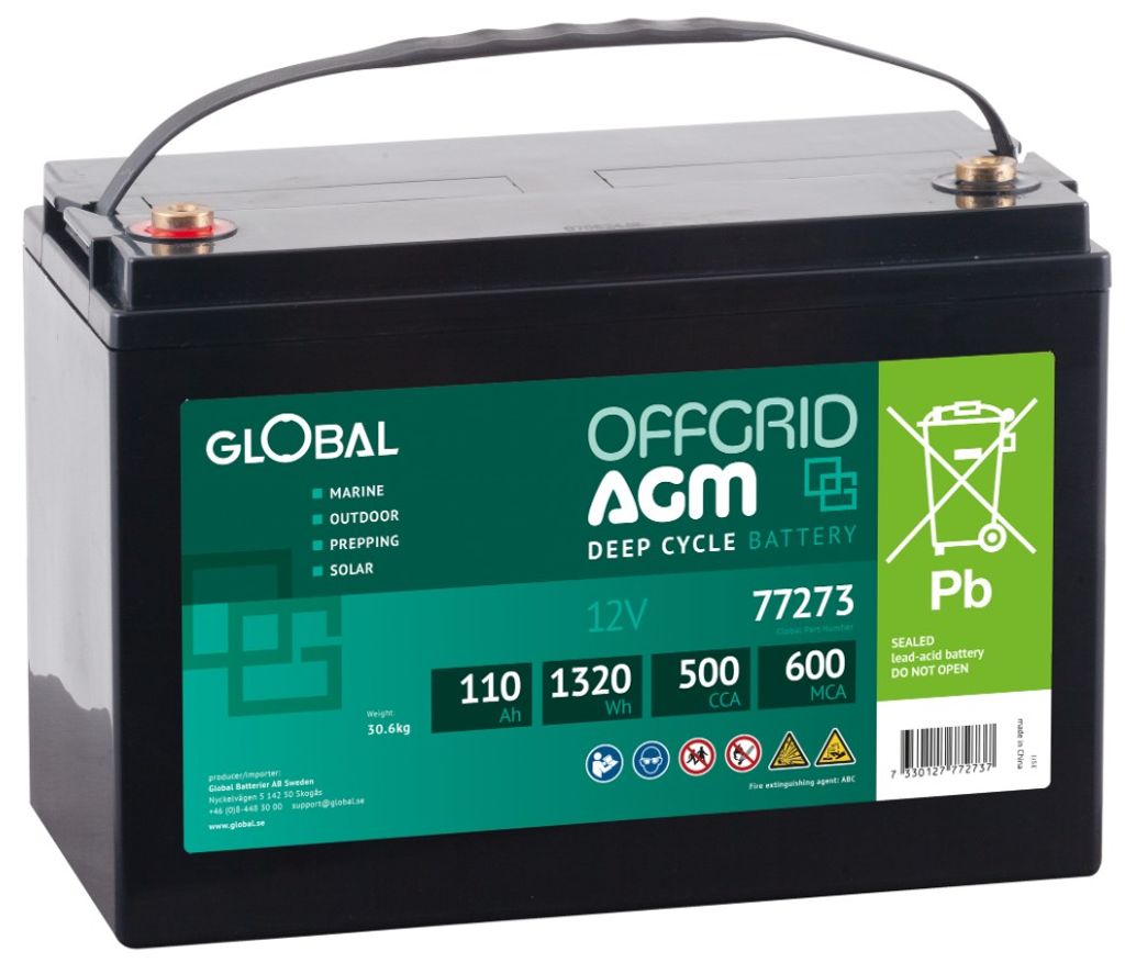 Global 12V OFFGRID 12-110 AGM Batteri 110Ah 330 x 173 x 220 mm