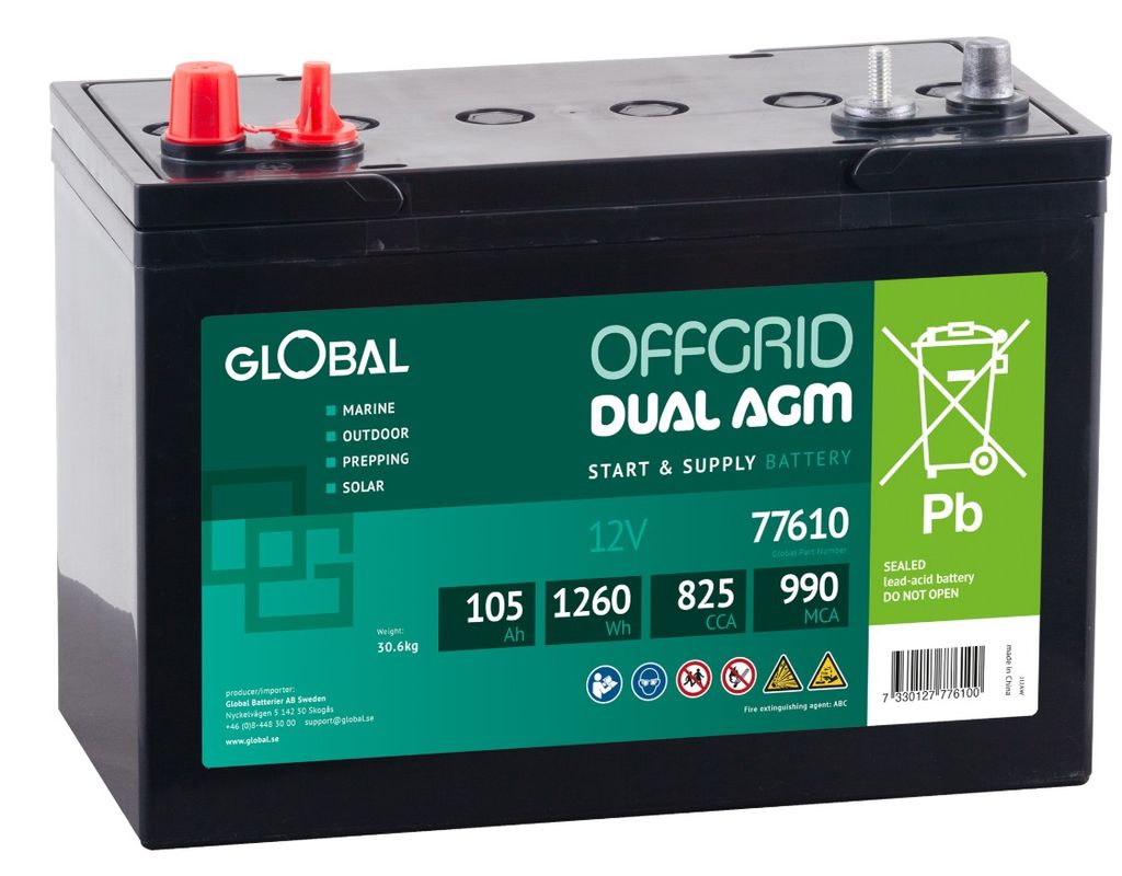 Global 12V OFFGRID DUAL AGM 31M Batteri 105Ah 330 x 173 x 235 mm