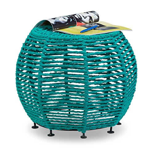 Relaxdays stickad pall shabby chic tygram, rund puff med ben H x b x d 35 x 42 cm, metall, blå, 41 x 41 x 35 cm 43 x 43 x 34.5 cm gRÖN