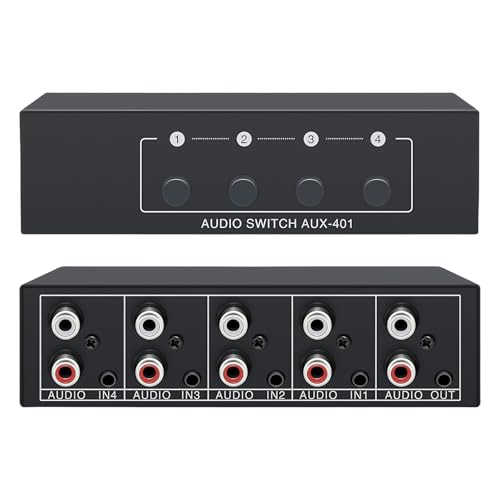 Sporgo RCA / 3,5 mm port 4 in 1 ut-brytare: AUX ljudbrytare RCA L/R Audio Switch 4(1)-In-1(4)-Out, AudioUmschalter Analog Audio Passiv Stereo Väljare för Hörlurar Förstärkare