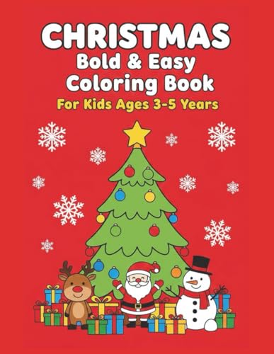 Christmas Coloring Book for Kids 3-5: Bold & Easy Holiday Pages: 50 Festive Designs Including Santa, Snowmen, Reindeer, Trees & Treats - Large 8.5x11 Inches - Perfect Stocking Stuffer & Activity Book