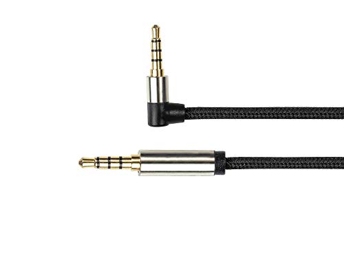 PYTHON Series PREMIUM Audio AUX 3,5 mm telekabel 4-polig – 1,5 m – helmetallkontakt med 2 mm nivå för skyddande fodral på båda sidor – vinklad på ena sidan – kopparbedare – textilnät – svart