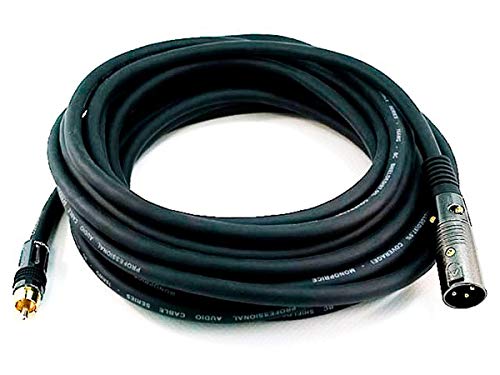 Monoprice XLR Male to RCA Male Cable - 25 Feet - Black, 16AWG Shielded Twisted Pair Oxygen-Free Copper Braid Conductors, E21 Gold Plated Connectors - Premier Series