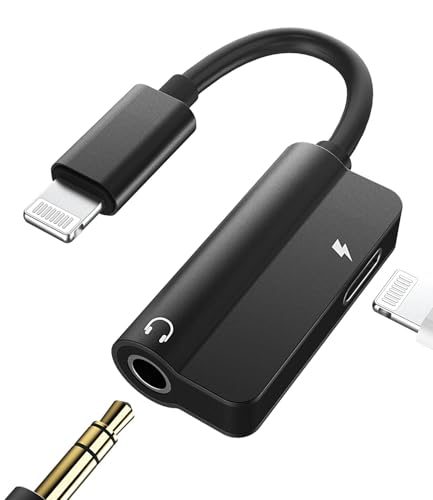 [MFi-certifierad] Hörlursadapter för iPhone iPad, 2-i-1 Lightning till 3,5 mm hörlursuttagsadapter med laddning, hörlursomvandlare Aux-adapter kompatibel med iPhone 14/13/12/11/XS/XR/X 8/iPad