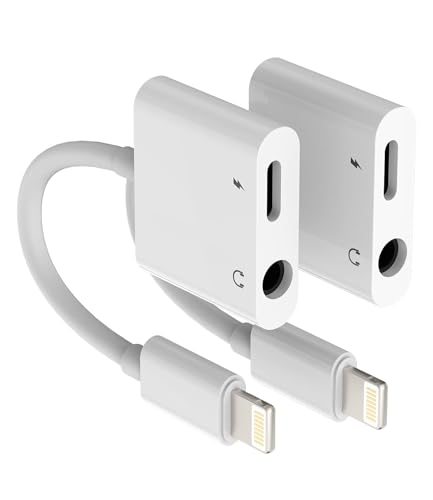 iPhone 3,5 mm hörlursuttag till Lightning laddningskabel adapter 2-i-1 (2 pack) aux Audio Fast Charger strömförsörjning Apple MFI kontakt snabbladdare splitter tillbehör för 14 13 12 11 Pro Max 8 7 Plus 6 5