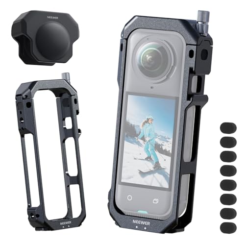 NEEWER Camera Cage kompatibel med Insta360 X5, Rig Video Skyddshölje av Aluminiumlegering Ram, 1/4 tum tråd Action Cam-Hållare, Silikonlinsskydd och 8 Skumskärm, AC033