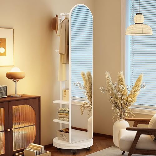 Rotating full-length mirror,fitting mirror,coat rack,Solid Wood Floor Mirror Full Length with Coat Rack,360° Rotating Full Length Mirror,Full Body Mirror for Living Room,Bedroom,Cloakroom(White,50*50*