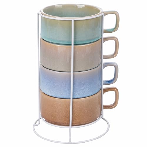 Villa d'Este Home Tivoli Set 4 mugg, 360 ml stengods med handtag, järnstativ, 4 toner