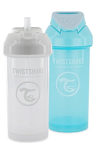 Twistshake 2x Sugrörsmugg – 360ml | Spillfri VattenFlaska | Läcksäker Mugg För Småbarn | BPA-Fri Sugrörsmugg | Träningsmugg För Barn | Vit Blå