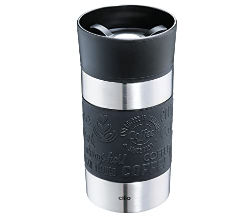Cilio VIAGGIO Termomugg, 300 ml, svart, mugg To Go med 360° quick-presslås, dubbelväggssystem, läckagesäker, perfekt för alla vanliga helautomatiska kaffemaskiner/pad-maskiner