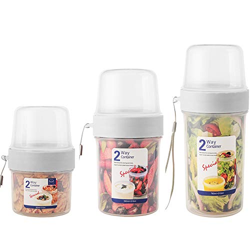 N/A yoghurtkopp, praktisk salladsmugg flingkopp, resemugg, matlåda, to go mugg lämplig för frys, mikrovågsugn och diskmaskin (förpackning med 3, 310 + 360 ml/310 + 560 ml/310 + 760 ml)