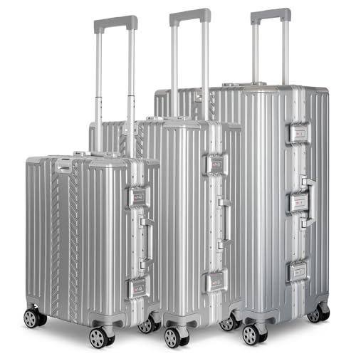 WINLIFE Resväska med hårt skal, M, L, XL, stort skal, ABS-hjul i silver, TSA-kombinationslås | 4 x 360° dubbla spinnhjul | teleskophandtag | integrerad mugg- och fickhållare, silver, M+L+XL, Resväska