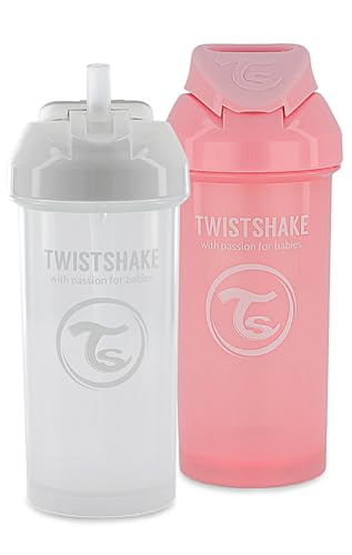 Twistshake 2x Sugrörsmugg – 360ml | Spillfri VattenFlaska | Läcksäker Mugg För Småbarn | BPA-Fri Sugrörsmugg | Träningsmugg För Barn | Vit Rosa