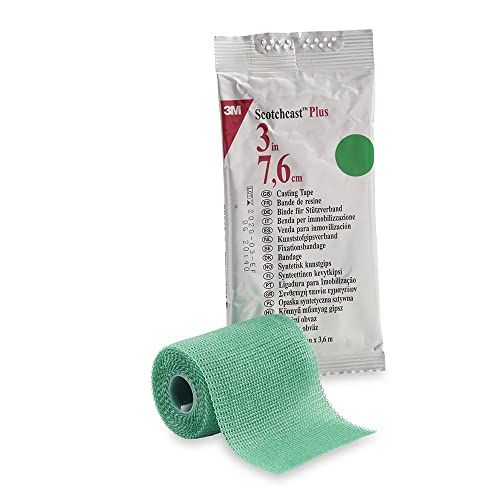 3 m – Scotchcast Plus, lätt, stabil, ventilerande, vattenaktiverbart stödbandage av glasfiber, grön, storlek 7,5 cm x 3,65 m, förpackning med 10 stycken.