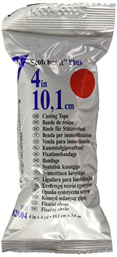 3M – Scotchcast Plus gjuttejp, vattenaktiverat glasfiberbandage, lätt, motståndskraftig, andningsbar, röd färg, storlek 10 cm x 3,65 m, förpackning med 10 enheter.