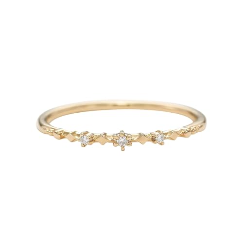 Elli DIAMONDS dam trio förlovningsring med diamant (0,04 ct) i 375 gult guld, 52, Fasetterad, Diamant
