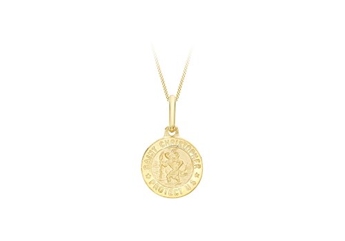 CARISSIMA unisex diamantslipning pansarkedja med St Christopher rund medalj satin berlock 12 mm 9 K (375) e Gult guld, colore: Gult guld, cod. 1.40.3074
