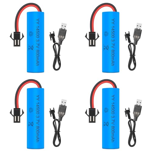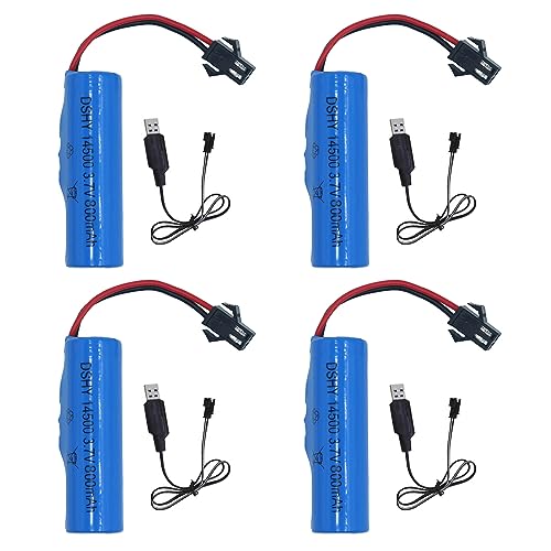 1 4 500 Li-ion batteri 3,7 V 800 mah, TGKYK 4 stycken 3 7 V Li-ion batteri med 4 USB-laddare SM-2P Plug, 14 500 batteri 3,7 V för RC-bilar, pansarvagnar, båtar, robotar