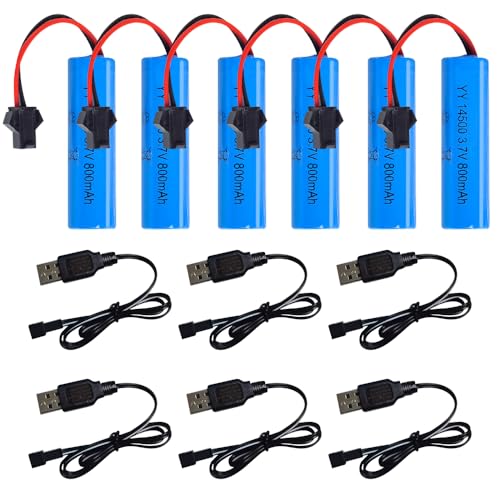 DAJASD Uppladdningsbart batteri 14500, 6 st, 3,7 V, 800 mAh, uppladdningsbart med SM-2P-uttag, med USB-laddare, uppladdningsbart batteri för fjärrstyrd bil, båtar, tankar, robotar