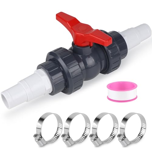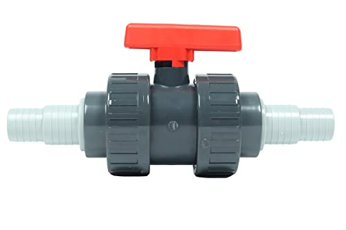 Wacredo PVC kulventil 50 mm 2 x slanghylsor 32–38 mm, avstängningsventil med limmad slanganslutning för poolslang, 2-vägsventil