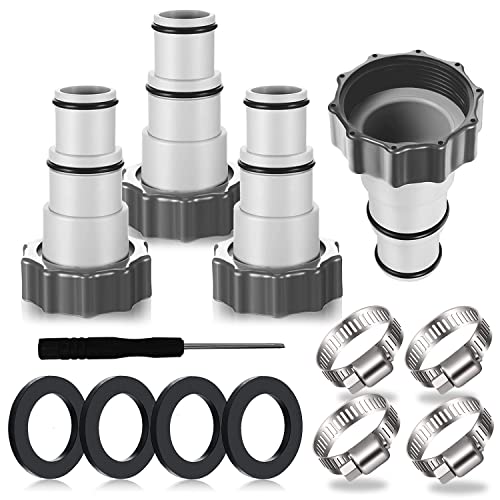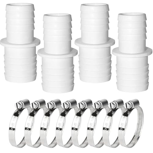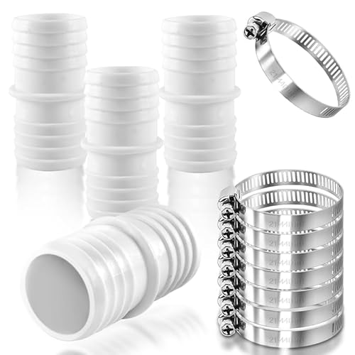 Spetsbst 4 stycken poolslangkontakter 38 mm till 32 mm, poolslang 32 mm kontakt, poolslangadapter med 4 slangklämmor i rostfritt stål (32 mm – 38 mm)