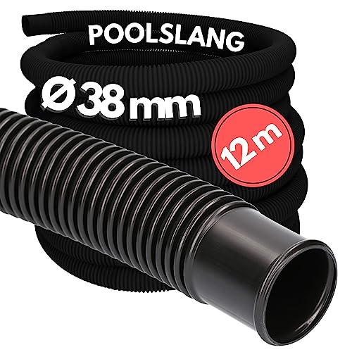 Kalitec 12 meter poolslang 38 mm, svart I poolslang 38 mm I slang pool I slang för poolpump I flexibel pumpslang I tillverkad i Tyskland I formstabil I stegtålig