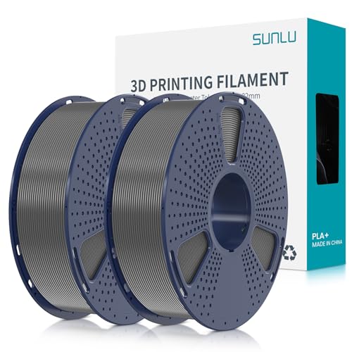 SUNLU PLA+-filament 1,75 mm 2 kg, PLA Plus-3D-skrivarfilament, högre belastningsgrad, noggrant lindat, 2 rulle PLA-filament till 3D-skrivare, mätnoggrannhet +/- 2,02 mm, grått + grått