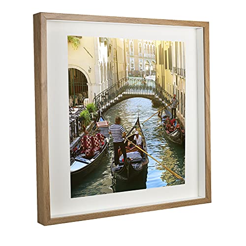 BD ART 50 x 50 cm stor låda 3D-objektram bildram med passepartout 40 x 40 cm, ek fyrkant för fyllning, lägre för objekt, foto, suvenirs 3 cm, för väggmontering
