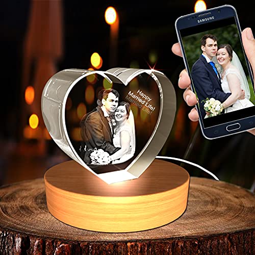 Personlig anpassad 2D/3D holografiskt foto etsad graverad inuti kristallen med din egen bild (födelsedag, bröllopsgåva, minnesmärke, mors dag, alla hjärtans dag, jul) (2,95 x 3,55 x 6,95 tum)