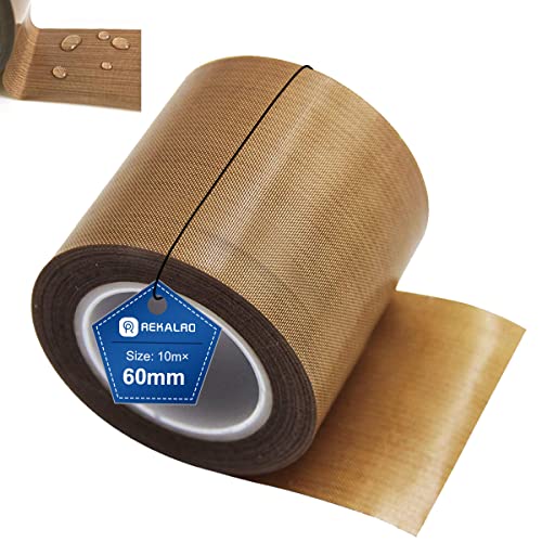 REKALRO Teflon-tejp/PTFE-tejp, högtemperaturlim, 3D-skrivar-högtemperaturband, vakuumtejp, isoleringstejp för vakuummaskin, hand- eller pulsförsegling (60 mm x 10 m)