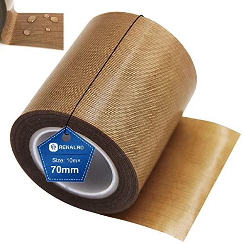 REKALRO Teflon-tejp/PTFE-tejp, högtemperaturlim, 3D-skrivar-högtemperaturband, vakuumtejp, isoleringstejp för vakuummaskin, hand- eller pulsförsegling (70 mm x 10 m)