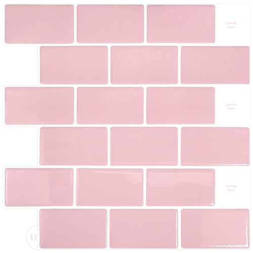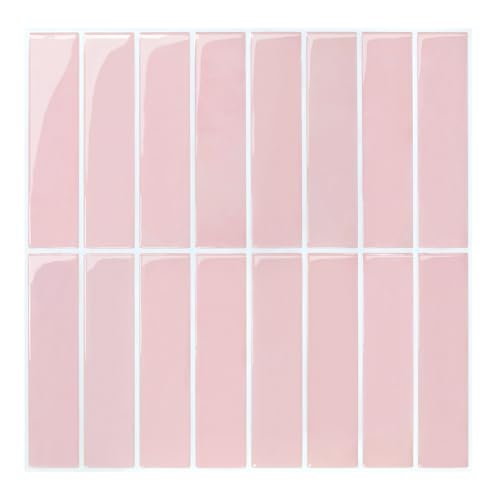 Commomy 3D kakeldekaler självhäftande kakel kök badrum, 30,5 x 30,5 cm, 10 stycken glänsande rosa vinyl väggplattor självhäftande kakel köksvägg Metro självhäftande klistermärken kakeldekor