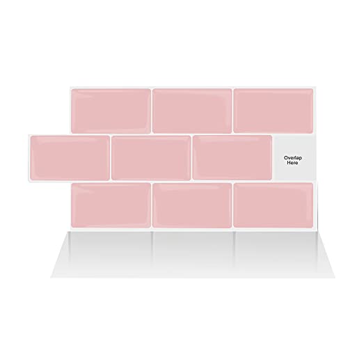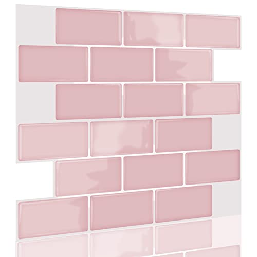 Alwayspon 10 ark rosa 3D vinyl kakel klistermärke överföringar, skala av och klistra fast självhäftande vattentät stänkskydd självhäftande kakel dekaler för kök badrumsvägg, 30 x 15 cm