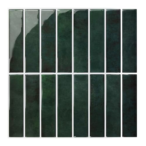 Commomy 3D kakeldekor självhäftande kakel kök badrum, 30,5 x 30,5 cm, 10 stycken glänsande skogsgrön vinyl väggplattor självhäftande kakel köksvägg Metro självhäftande klistermärken kakeldekor