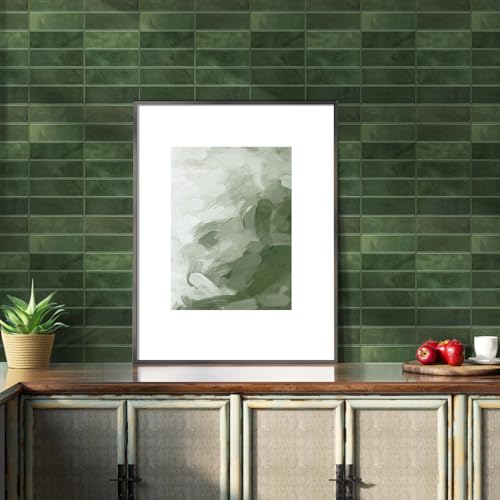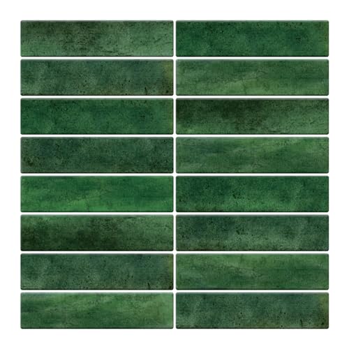 WoStick grön självhäftande kakel kök, 3D skala och stick plattor med vintage textur, lätt att rengöra rektangel Subway självhäftande kakel för kök badrum, 30,5 x 30,5 cm 10 ark