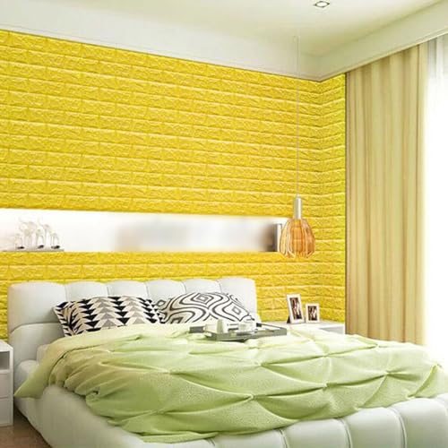 3D kakel tegel väggklistermärken 10 st vattentäta skumpaneler för kreativ inredning, själv för enkel applicering på flera ytor (gul)