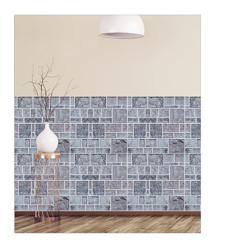 WALPLUS Purbeck sten 16 ark glansiga 3D-kakelklistermärken 15 cm (6 tum) väggstänkskydd vinyl självhäftande kakel stänkskydd skala och klistra fast badrum kök dekor kakel färg vår påskdekoration
